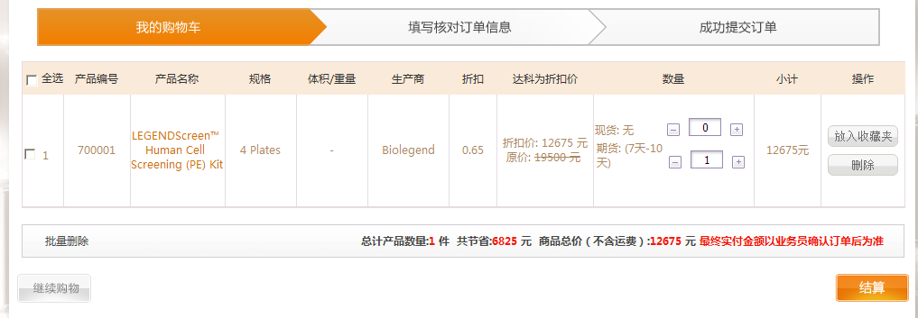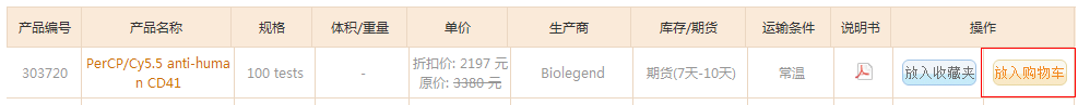 在產(chǎn)品目錄中點(diǎn)擊“放入購(gòu)物車”,可以將產(chǎn)品放入購(gòu)車車中。