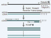 隨機(jī)引物:某些特定mRNA由于含有使反轉(zhuǎn)錄酶終止的序列,比較難以轉(zhuǎn)錄成全長(zhǎng)序列時(shí),可采用非特異的隨機(jī)引物來(lái)轉(zhuǎn)錄全長(zhǎng)mRNA。選擇這種引物,體系中所有RNA分子會(huì)全部充當(dāng)DNA第一鏈模板,然后PCR引物在下游擴(kuò)增過(guò)程中再擴(kuò)增特異的目的基因。通常,用此引物合成的cDNA中,96%來(lái)源于rRNA。