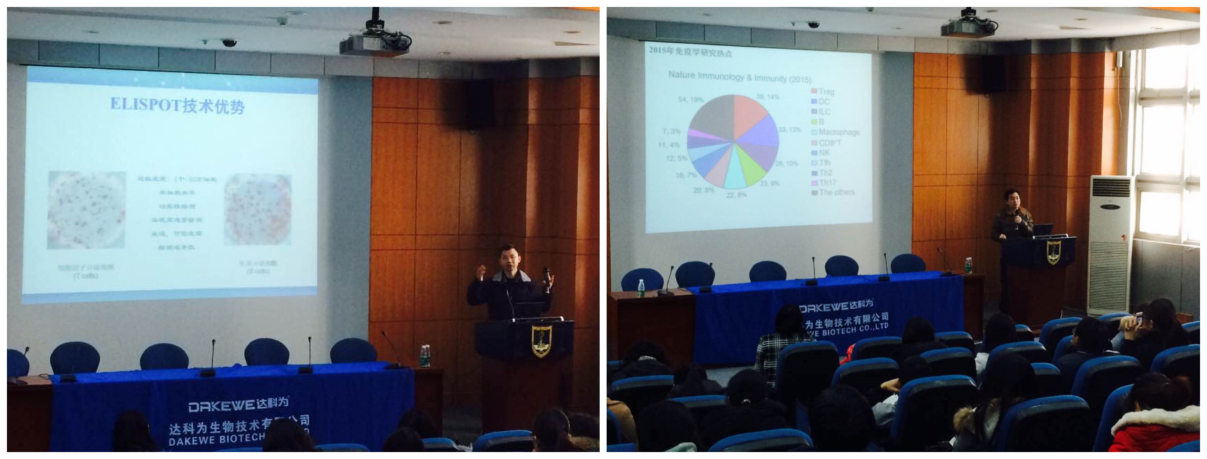 1月8日上午九點,第二天的理論課程開始了。首先是達科為生物工程中心周翔經理作報告。周翔經理講述了ELISPOT的原理、刺激劑的選擇、斑點結果判定以及ELISPOT的應用等。