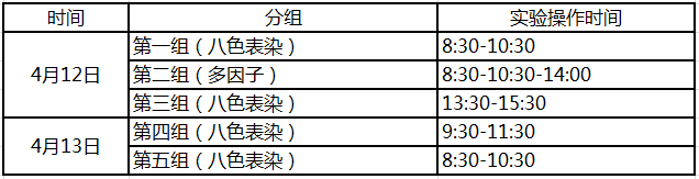 *注:八色表染均為相同實(shí)驗(yàn)內(nèi)容,請(qǐng)根據(jù)自己的時(shí)間選擇不同時(shí)間段的實(shí)驗(yàn)。