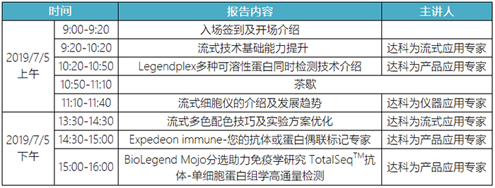 達科為生物公司作為國內(nèi)一流的生物試劑供應商,多年來在全國各地免費舉辦了百余場流式培訓班,取得了熱烈的反響和良好的反饋。此次流式培訓班將于2019年7月5日-7月7日舉辦。
