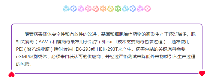 大規(guī)模Car-T病毒包裝就用它啦,法國Polyplus的PEIpro?轉(zhuǎn)染試劑,還有臨床級別哦!