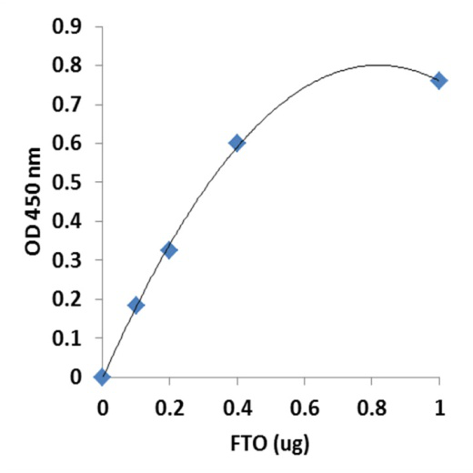添加不同濃度重組FTO酶,測定OD值。OD值與FTO酶活性成反比。