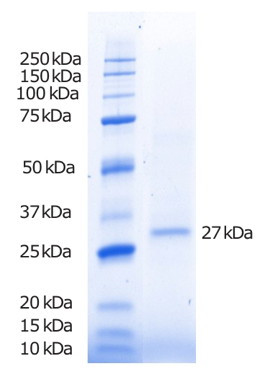 STING通過胞漿區(qū)域與CDNs結(jié)合。InvivoGen提供的重組STING蛋白對(duì)應(yīng)可溶性的胞漿結(jié)構(gòu)域(aa 137-379)R232突變型,是普遍的人源STING蛋白的同型。這個(gè)27kDa的重組蛋白產(chǎn)生自哺乳動(dòng)物中國(guó)倉(cāng)鼠卵巢細(xì)胞系(CHO),通過親和層析純化,不帶標(biāo)簽,能夠被市面上的商品化人源STING抗體所識(shí)別。